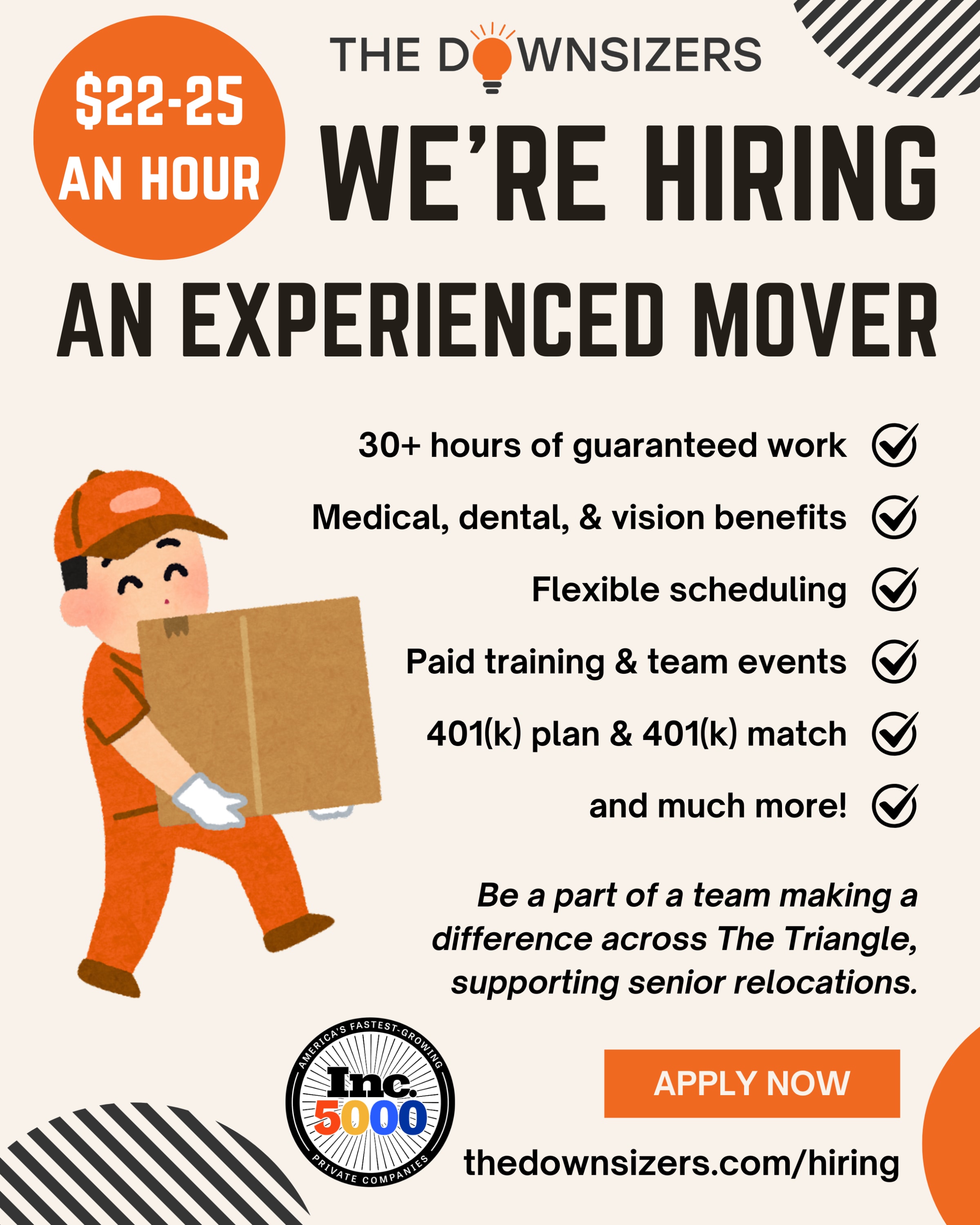 The Downsizers is hiring for an Experienced Mover to join our growing team. This role is designed for movers who already understand professional moving standards and take pride in safe handling, efficiency, and respectful client interaction. Our projects primarily support seniors and families during major life transitions, where experience and professionalism are essential.